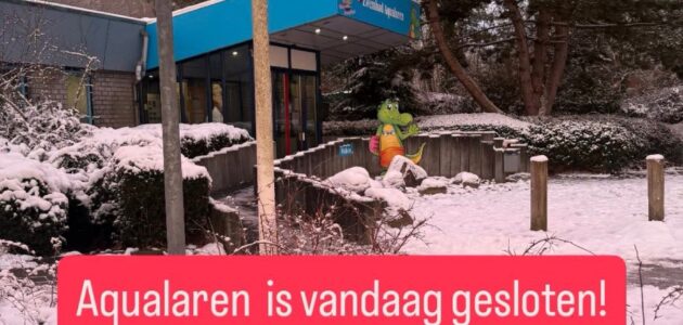 Vanwege de extreme weersomstandigheden blijft zwembad Aqualaren woensdag 7 en vrijdag 9 januari de hele dag gesloten. Dat betekent dus dat alle trainingen en lessen niet door kunnen gaan. Houd deze site in de gaten om te zien of het zwembad de komende dagen opnieuw moet besluiten dicht te blijven.
